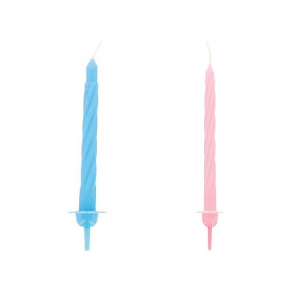 CANDELINE CERA CLASSICHE TORTA CON SUPPORTO , ROSA O AZZURRE –