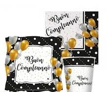 Coordinato buon compleanno Prestige di carta .. con decorazioni palloncino oro e nero
