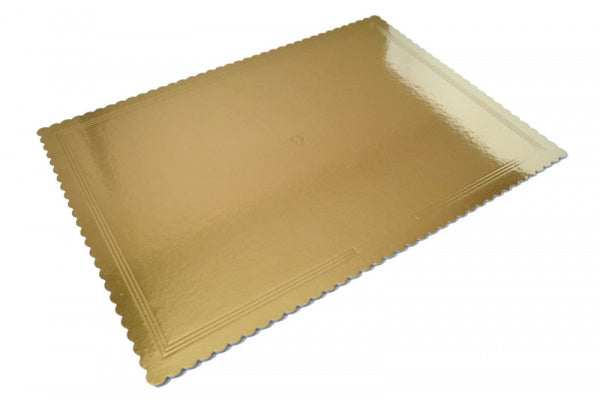 Food-grade pastry wing plates , in elegant gold colour, made of resistant cardboard coupled with transparent film.