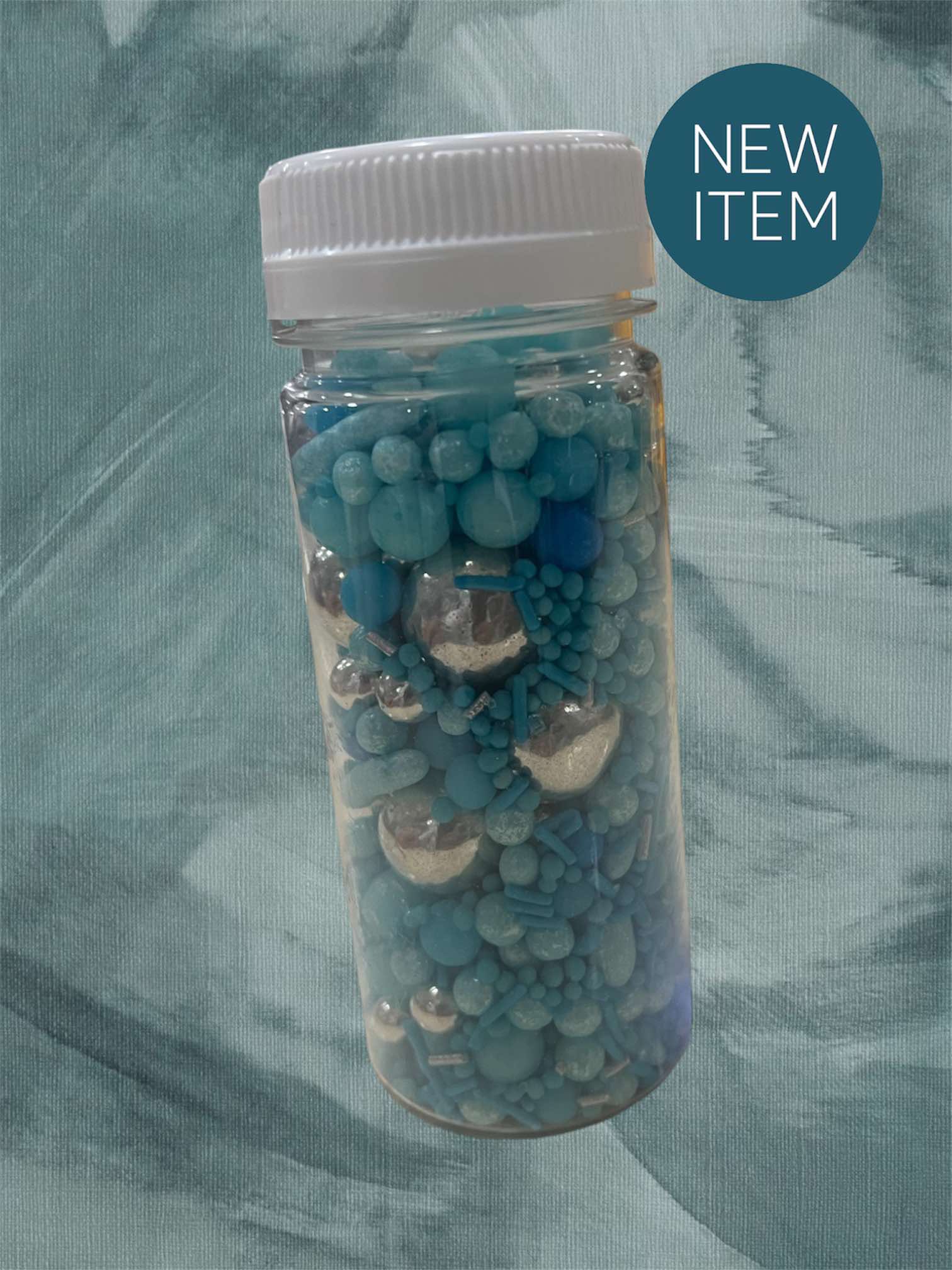 - Sprinkles zuccherini AZZURRI CONPOSTI da perline piccole AZZURRE perline medie AZZURRE ,BLU E ARGENTO,, zucchero glitter e CONFETTI ARGENTO