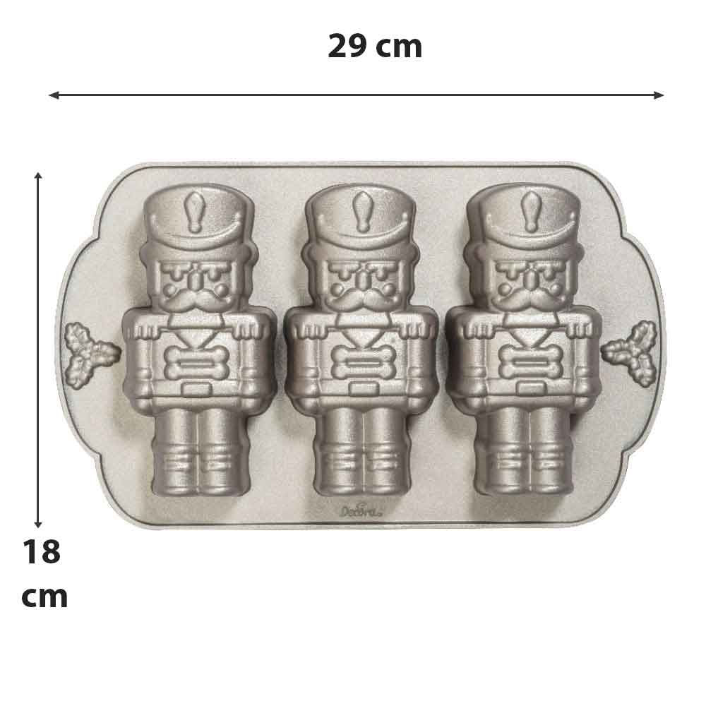 - Stampo per 3 dolci natalizi a forma di Schiaccianoci Decora, realizzato in metallo antiaderente di alta qualità, colore grigio argento