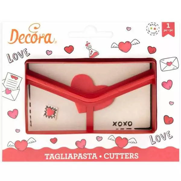 tampo in plastica ideali tagliapasta o taglia-biscotti per dolci a forma di busta per lettere con cuore larga 11,2 cm, lunga 6 cm ad alta 2,2 cm da Decora.